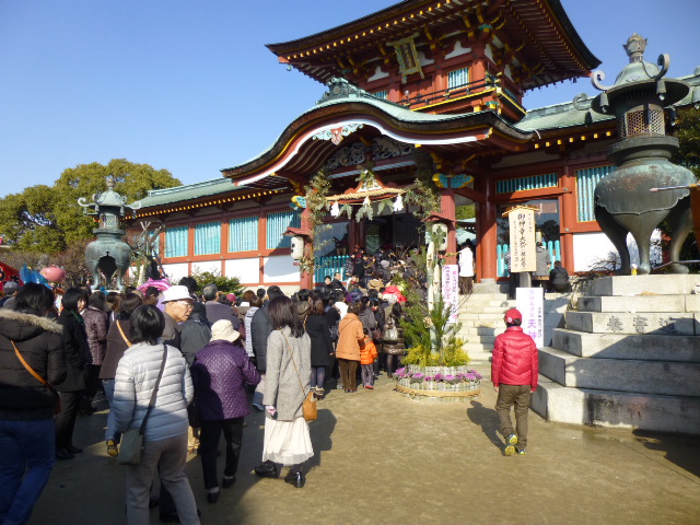 並んでいる人は、門を通ろうとする参拝者の方達です。