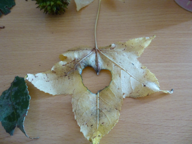 ハート型の虫食い落ち葉です。