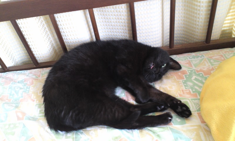 今日、ネコのクロと起床後1番に出会いました。