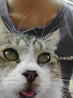 (家でエサを食べ、日頃は外で活動の猫です)
