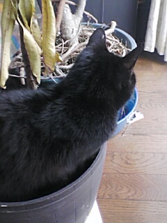 自分の家では鍋ネコならぬ鉢ネコです。